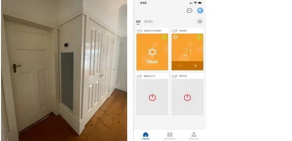The zone controller has a wired wall controller and a RF sensor is also deployed in each zone. We also chose to install a WiFi control module which enables control via EWPE Smart App including remote control via the internet.